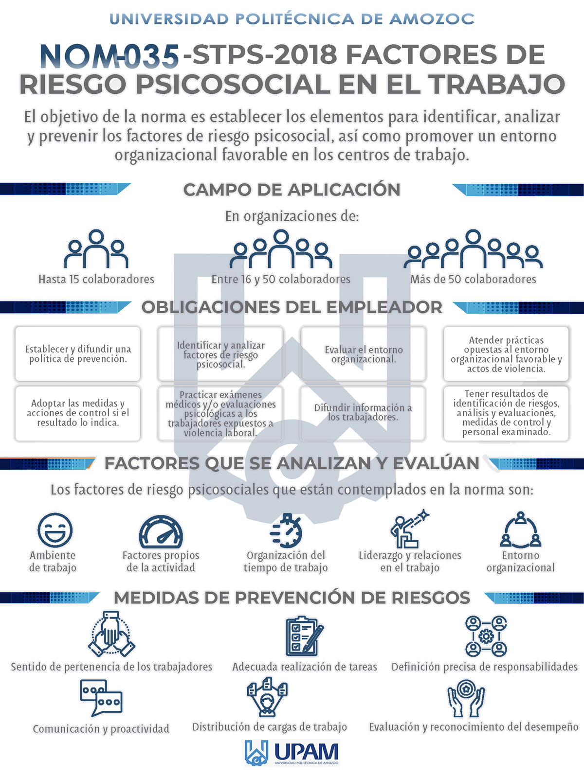 La Universidad Politécnica de Amozoc asume como parte de su cultura la prevención de los factores de riesgo psicosocial; la prevención de la violencia laboral y la promoción de un entorno organizacional favorable, por lo que hace públicos sus compromisos.